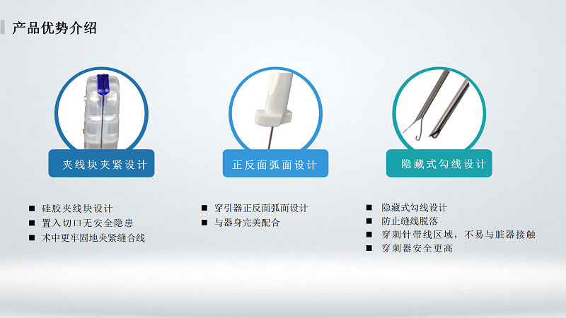 臨床顯示,要關(guān)閉穿刺孔,有一定難度,穿刺孔越小難度越大,臨床上5毫米的穿刺孔,基本上不縫合肌筋膜缺損, 10和12毫米穿刺孔,很難縫合全層肌筋膜缺損。各種規(guī)格的穿刺器都有發(fā)生穿刺孔切口疝的可能,臨床體檢或B超發(fā)現(xiàn),臍部穿刺孔疝的發(fā)病率為26%,腹腔鏡胃旁路手術(shù)臍部穿刺孔疝發(fā)病率為35%。專家呼吁, 8毫米及以上的穿刺孔、術(shù)中擴(kuò)大過(guò)的穿刺孔、高肥胖體重指數(shù)、小兒外科5毫米穿刺孔,需要縫合關(guān)閉。筋膜閉合器應(yīng)運(yùn)而生。